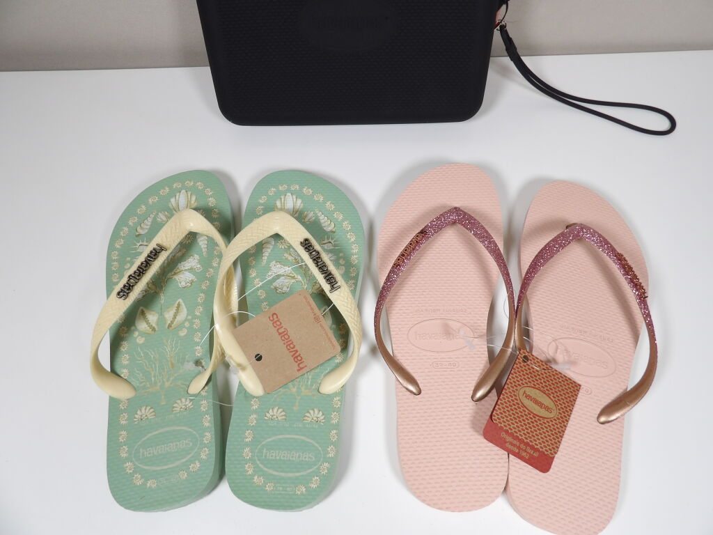 Lot de 2 paires de tongs Havainas + 1 petite pochette étanche en silicone noir - Neufs - Tailles: 41-42