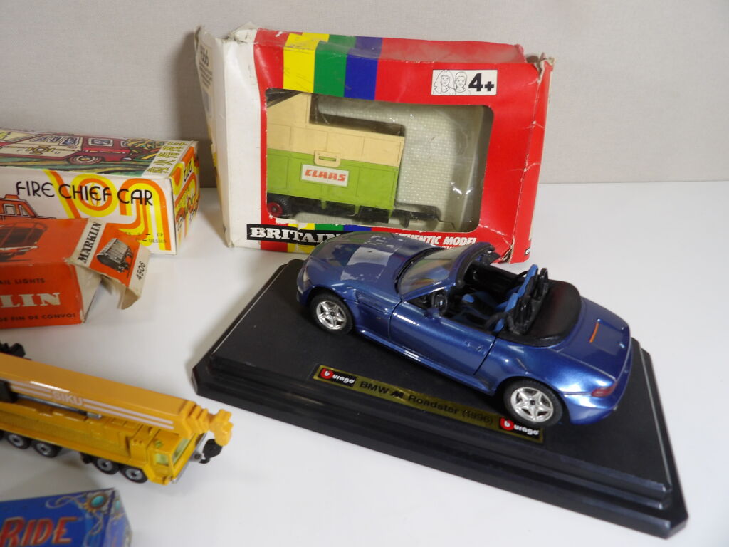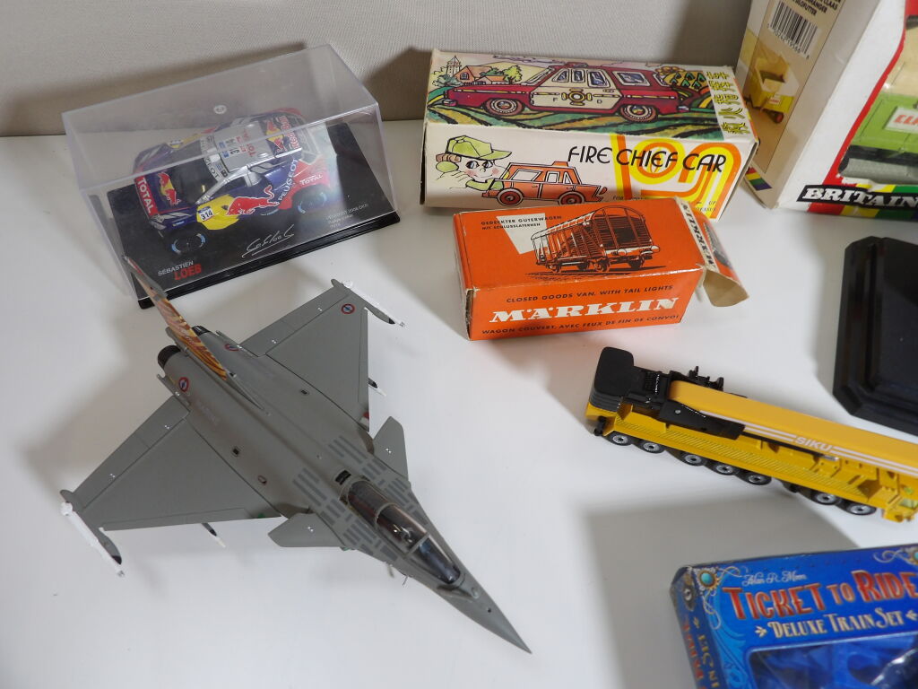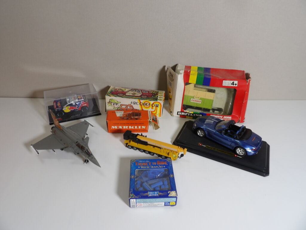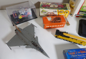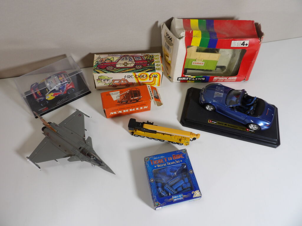 Lot de petites voitures / train anciennes, d'occasion vendus en l'état. On y inclut petite voiture et avion.
