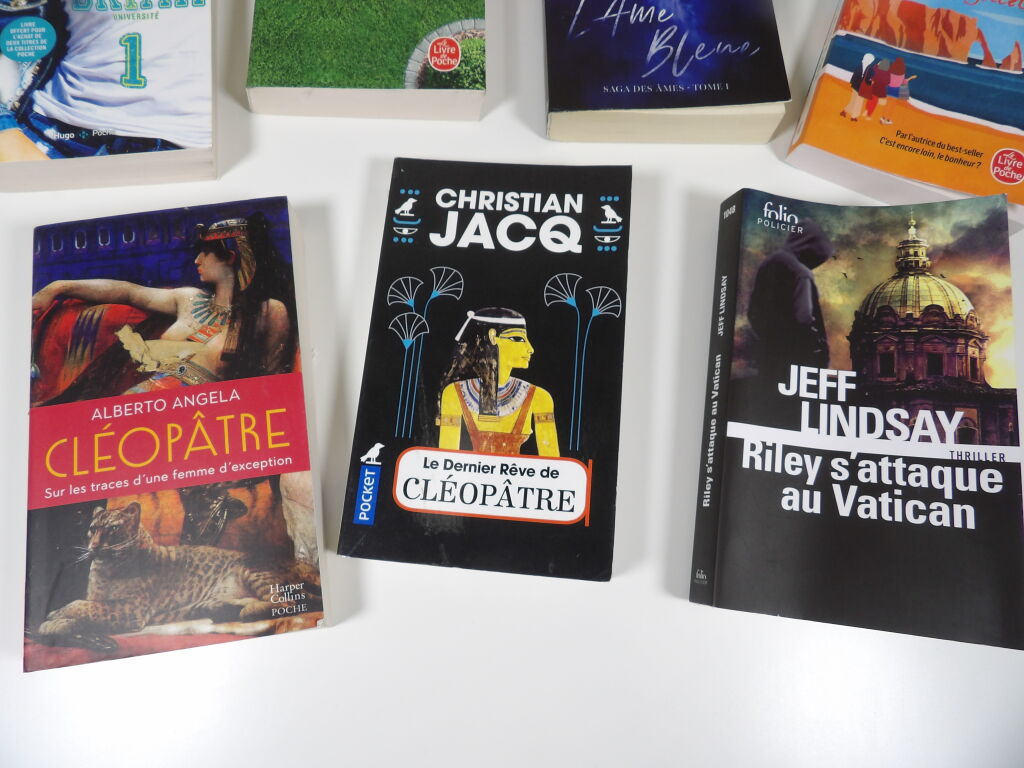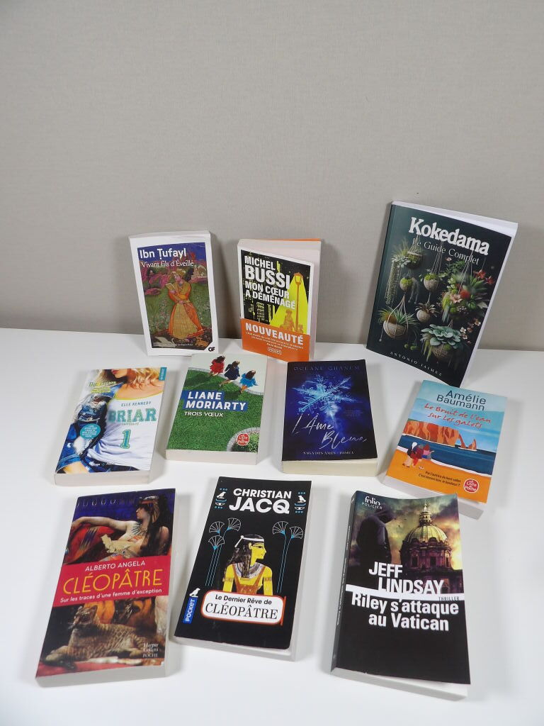 Lot de x10 livres ROMAN d'occasion : Jeff Lindsay Le Vatican, Michel BUSSI Mon coeur a déménagé, Amélie Baumann le bruit de l'eau sur les galets, Trois voeux de Liane Moriarty, Elle Kennedy...