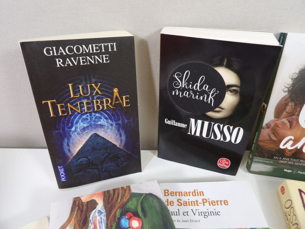 Lot de x12 livres ROMAN d'occasion : divers thèmes et auteurs; Paul et Virginie, Guillaume MUSSO x3, Lucinda Riley le domaine de l'héritière, Lux Tenebrae, Amours solitaires, STEPHEN KING.