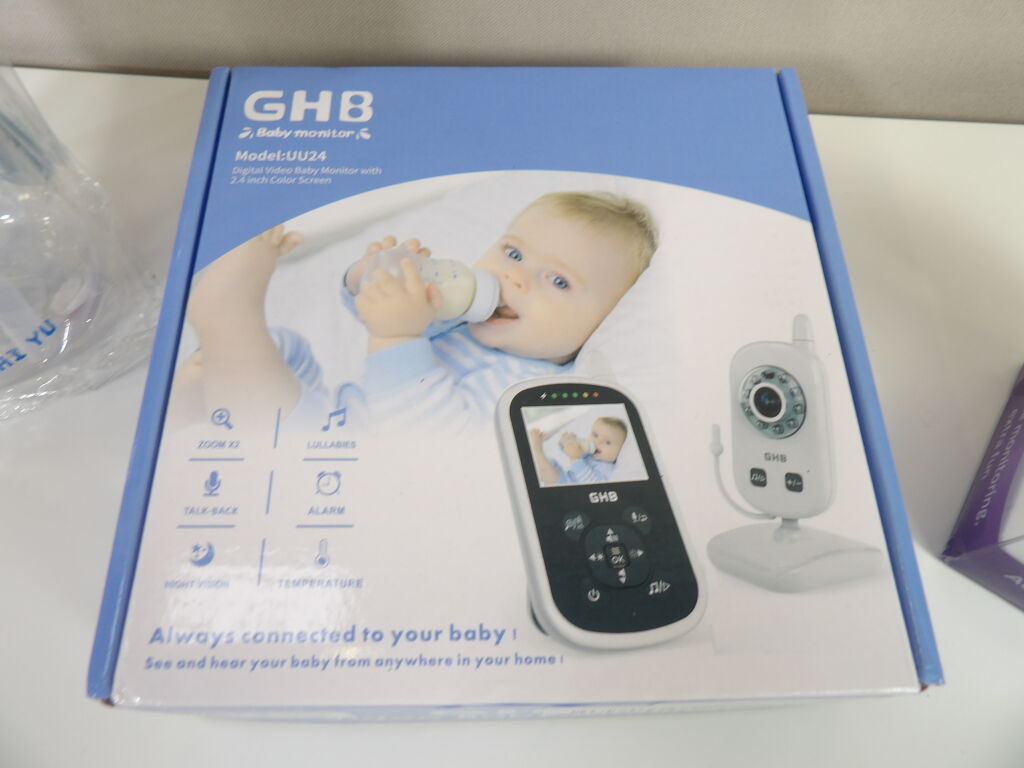 Lot SOMMEIL pour bébé de 2 articles neufs (boites descellées): BABYPHONE vidéo et Thermometre numérique pour la chambre. On y inclut une gourde à paille.