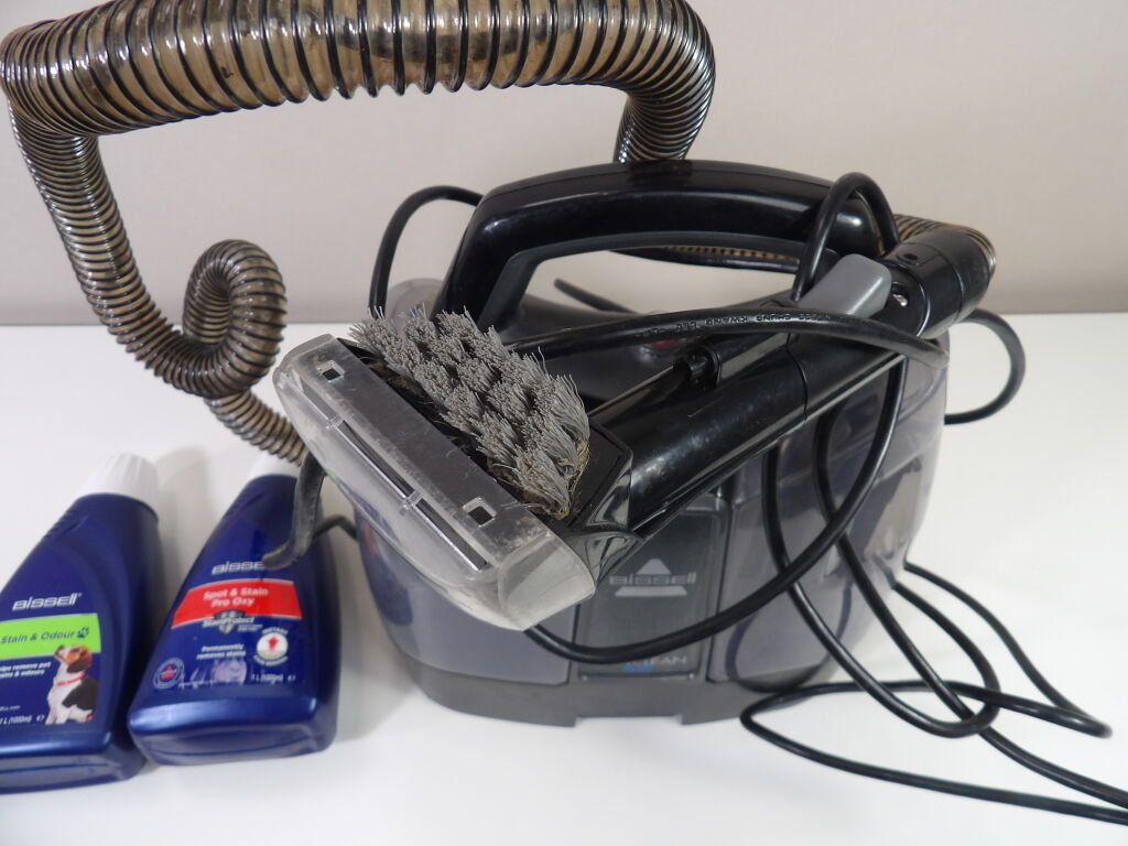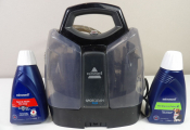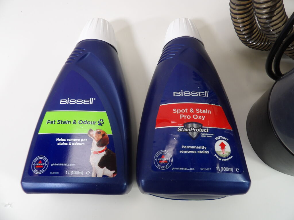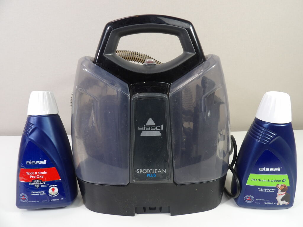 Nettoyeur Bissel Spotclean Plus d'occasion (non testé), on y joint 2 bidon de produits de la marque.