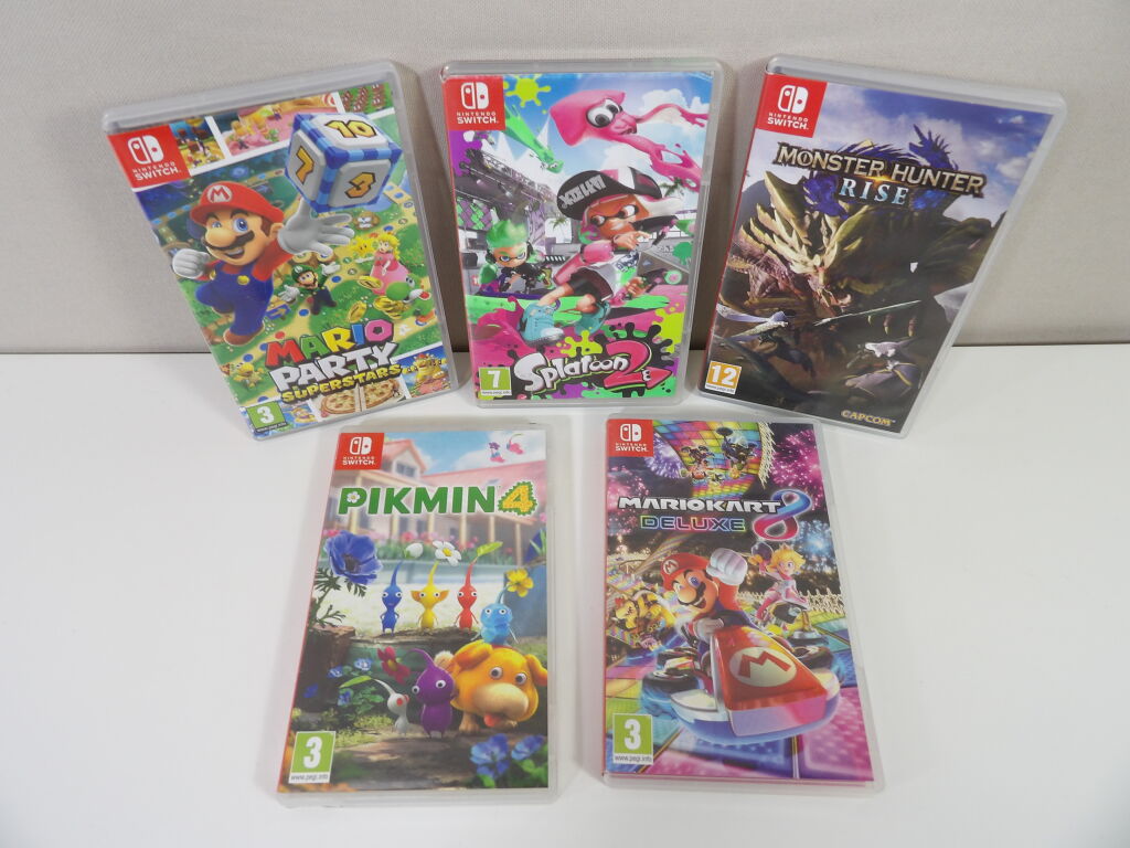 NINTENDO SWITCH x5 jeux d'occasion : PIKMIN 4, MARIO KART DELUXE 8, MARIO PARTY Superstars, SPLATOON 2 et MONSTER HUNTER Rise
