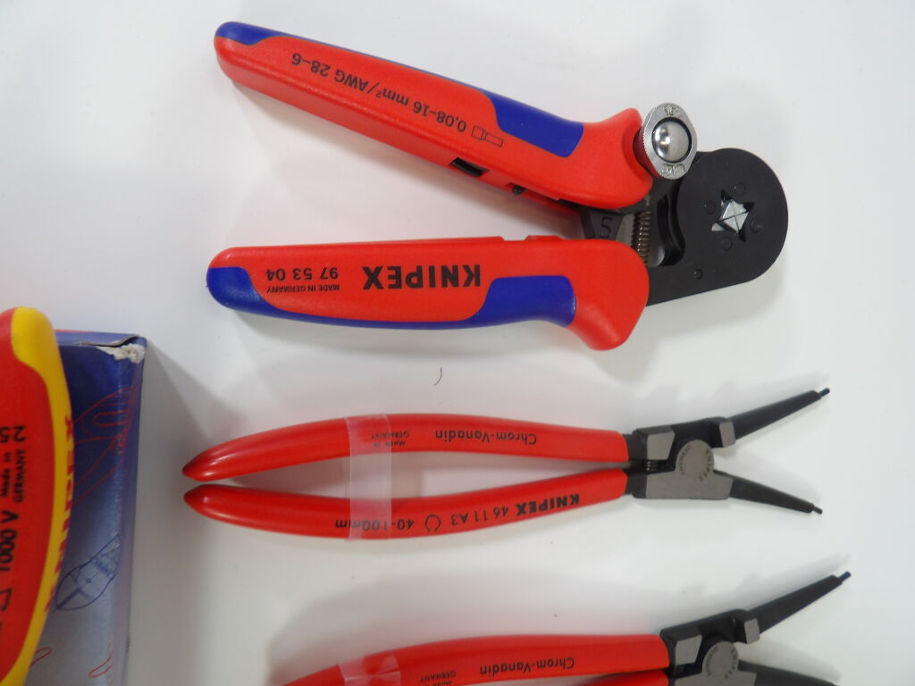 Outillage : 5 pinces Knipex (pinces pour circlips, pince à sertir pince à bec courbé ...) neuves
