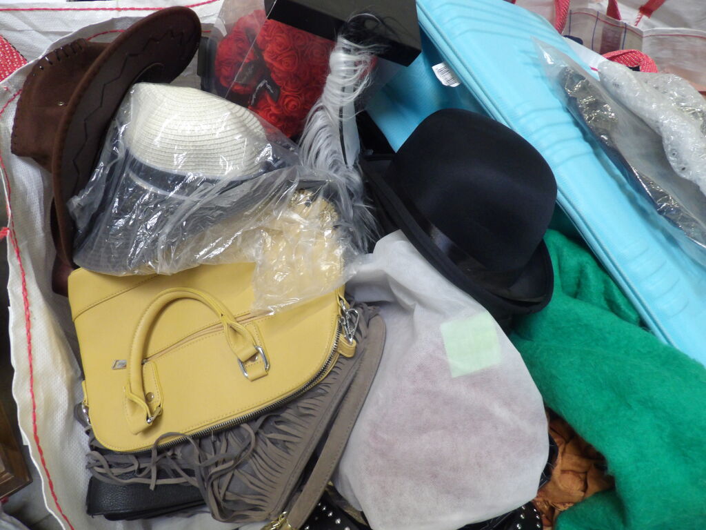 Palette de 400 pièces sacs et accessoires d'occasion, certains neufs (sacs, chapeaux, ceintures, divers...).