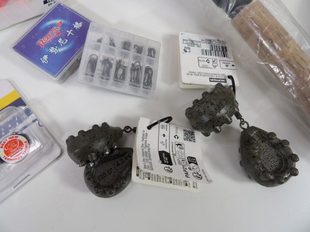 -DECATHLONx3 :Ligne montée CAPERLAN + x2 de 2 Plombs pêche de la carpe plombs grippa 180g.