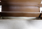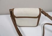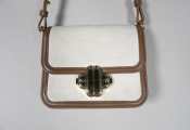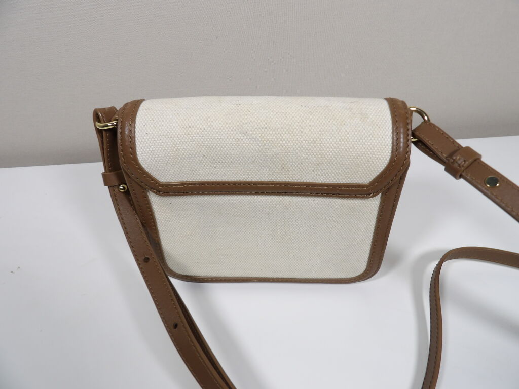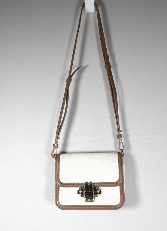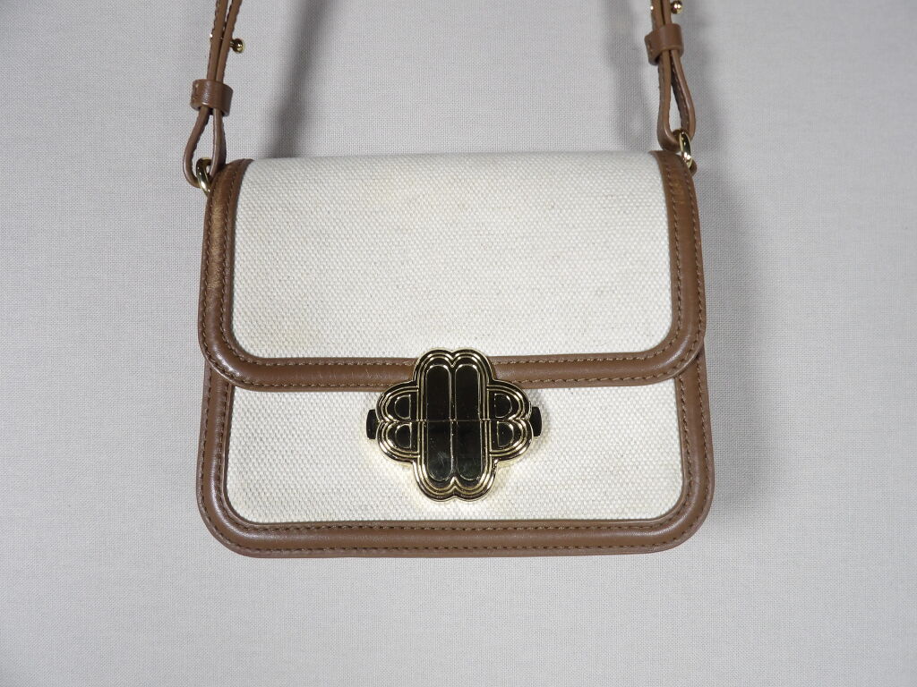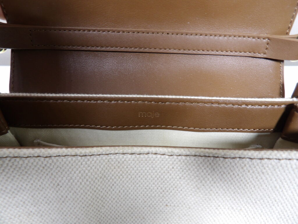 Petit sac Maje en toile de coton écrue et cuir Camel - Fermoir doré - Occasion en bon état