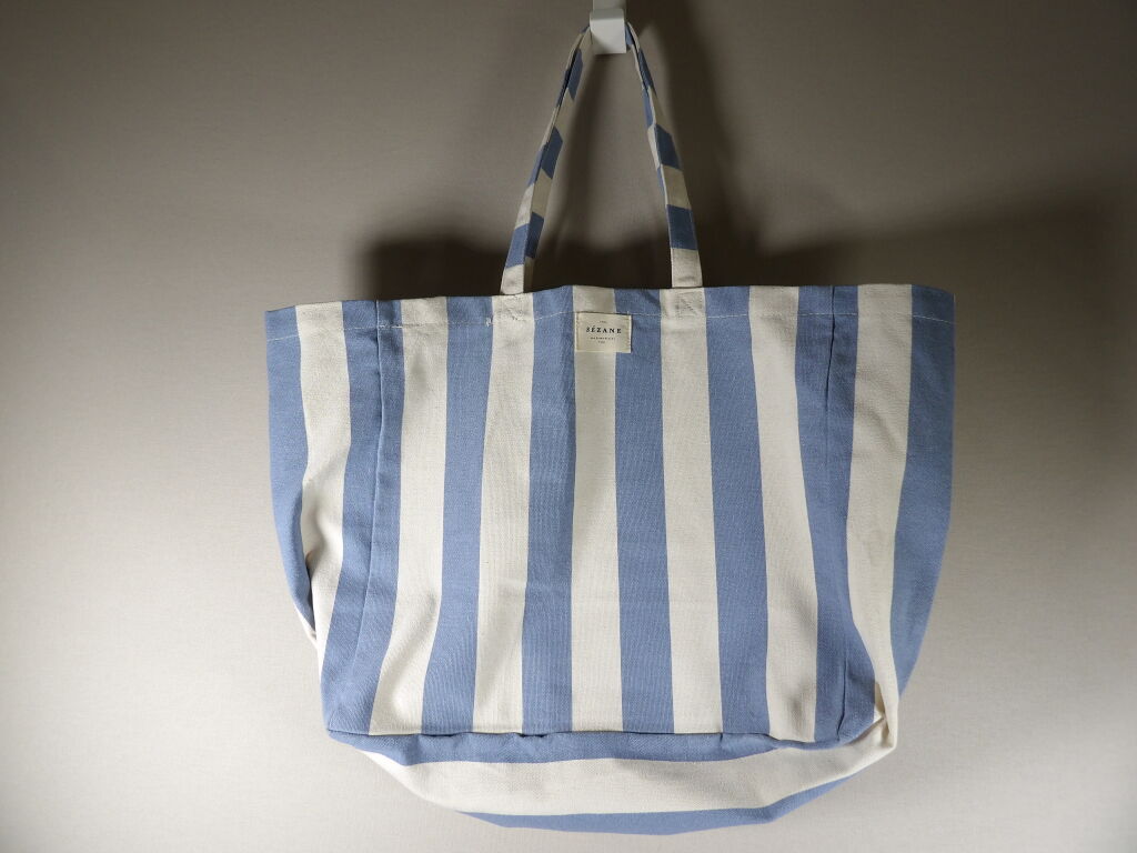 SEZANE x2 Robes FABIOLA en crème et marine, en taille S. On y inclut un totebag rayé.