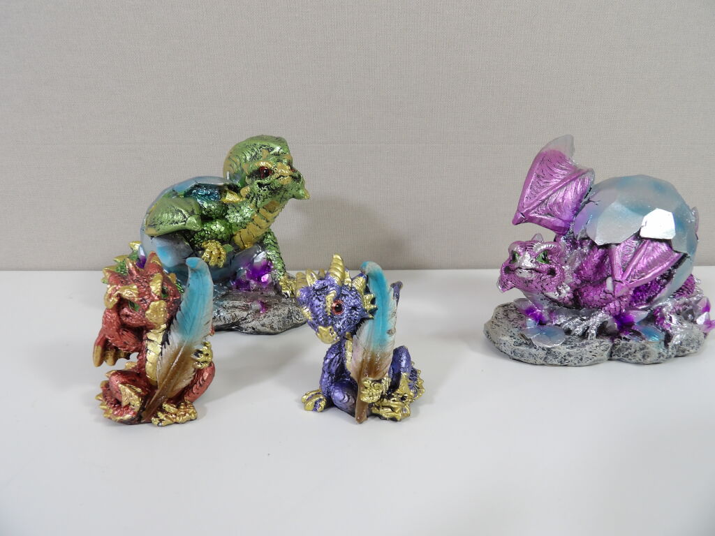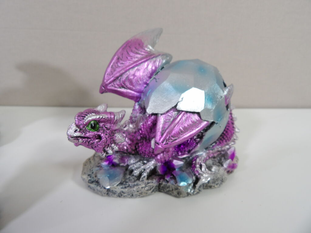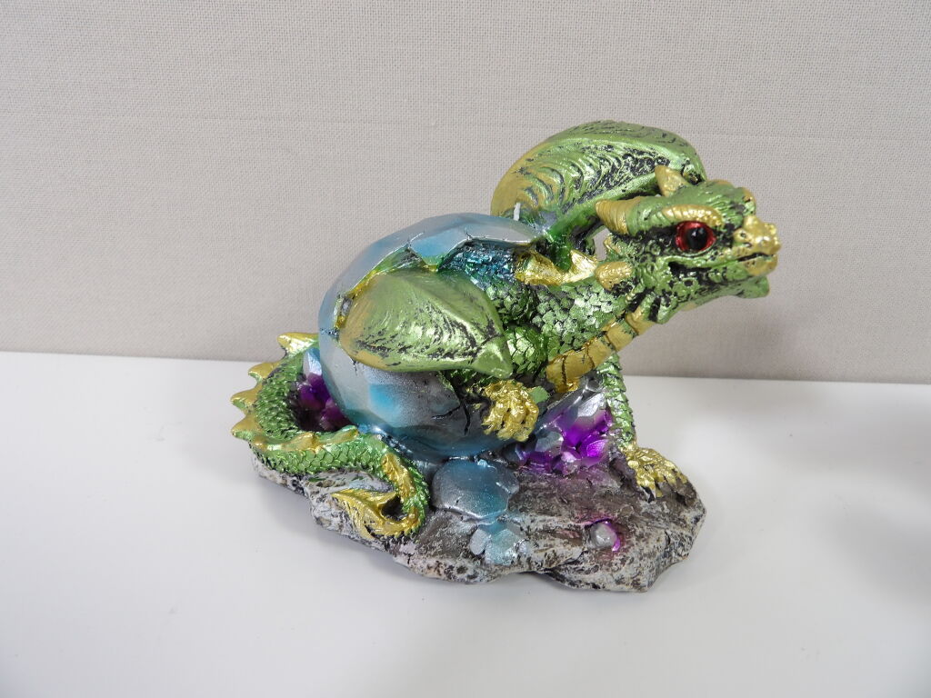 Statuettes de Dragon sorti de l'oeuf, avec des cristaux; fabriqués en résine.