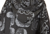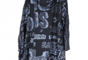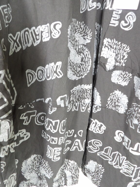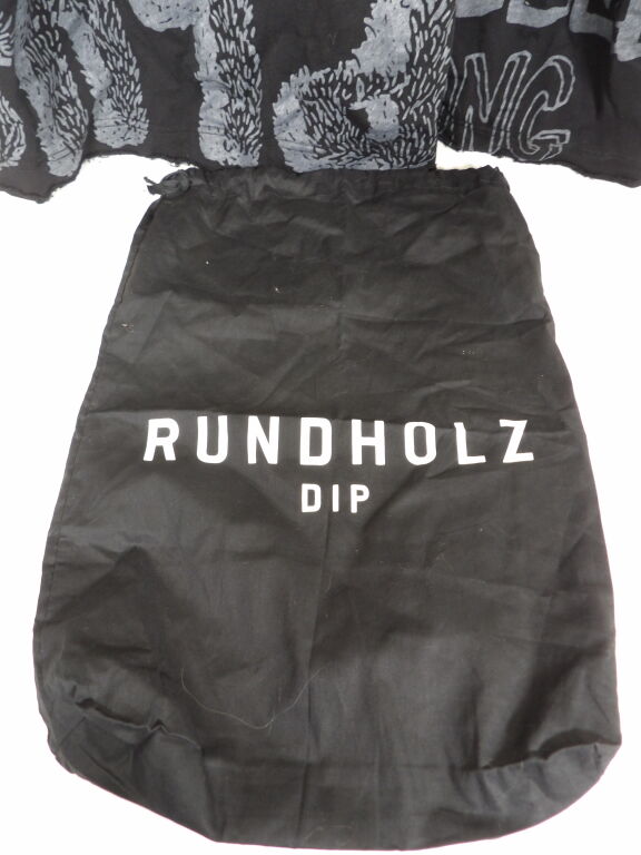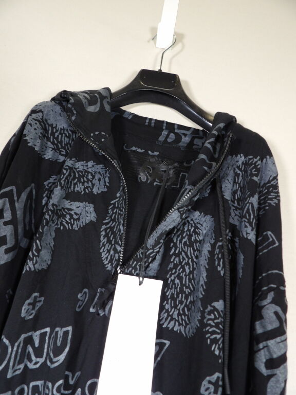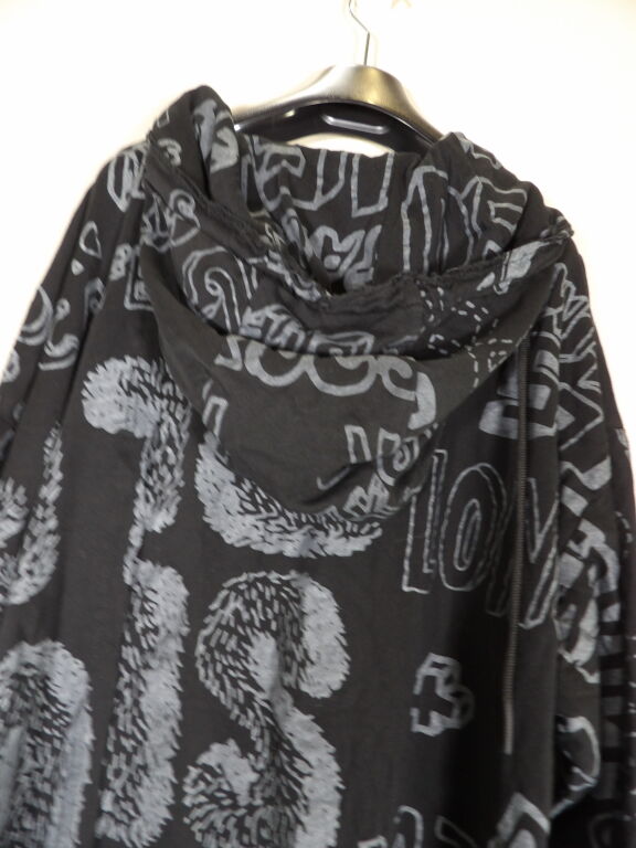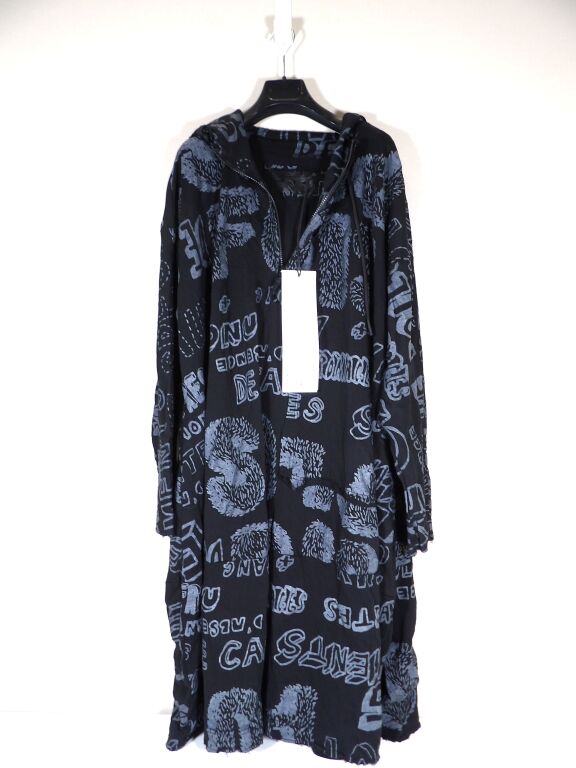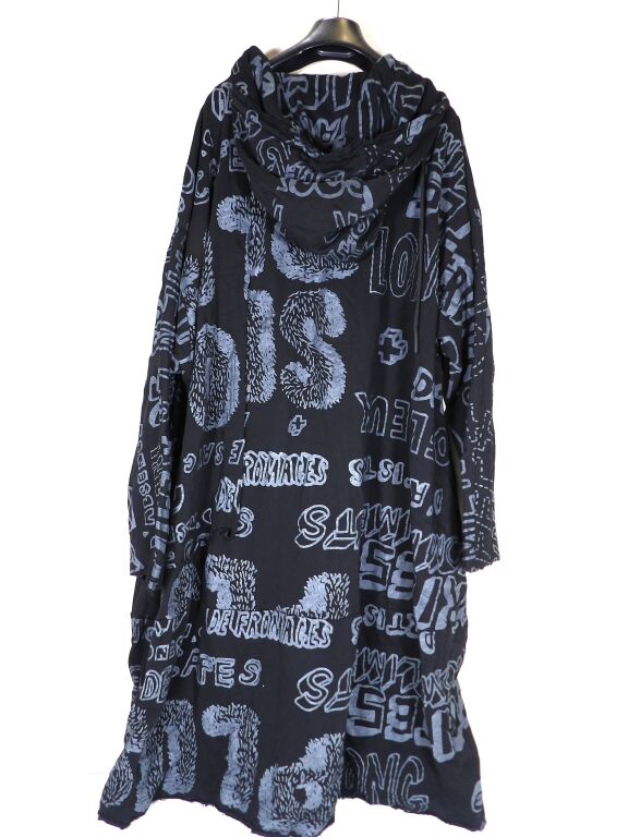 Vêtement femme de créateur de la marque RUNDHOLZ DIP - robe oversize destructurée à capuche en coton noir et impressions grises. Taille Unique - Prix étiquette 430 euros
