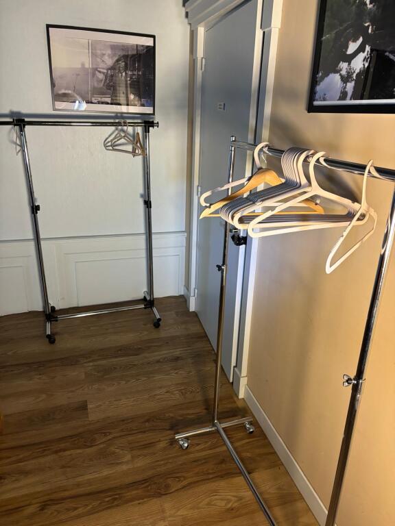 Lot des réserves : petit rack en métal environ 5/6m linéaires, 8 supports de panier de course neufs et 6 casiers vestaires (vendu en live et sur désignation)