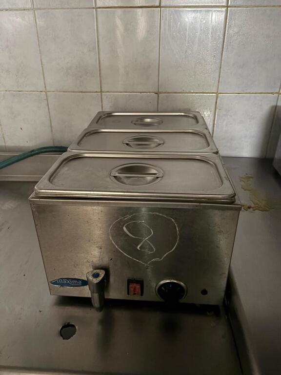 Bain-marie à 3 bacs en inox ancien (vendu en live et sur désignation)