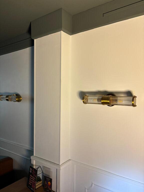 Lot de 6 luminaires de salle en verre, 6 appliques et 2 ventilateurs éclairants (vendu en live et sur désignation)