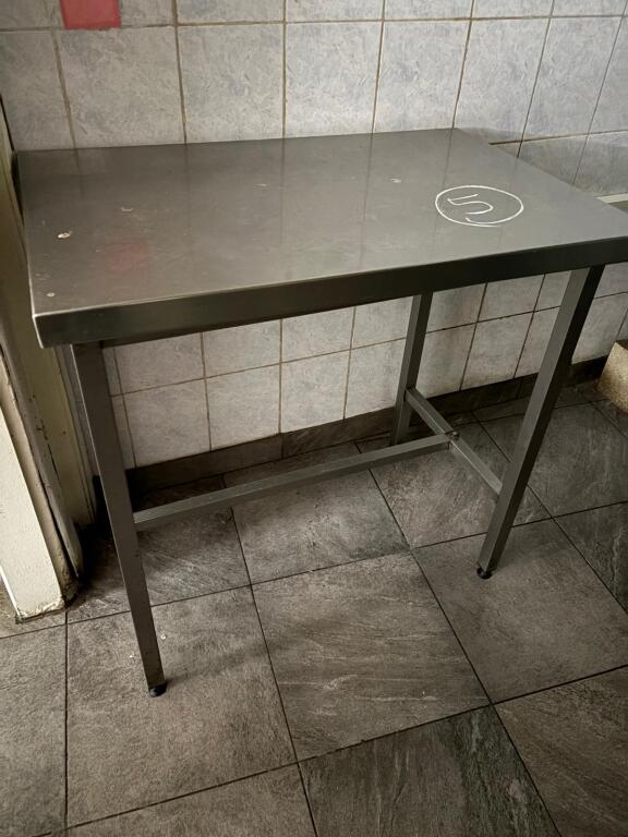 Lot de 4 tables de travail en inox (Dim. 90cm, 140cm, 120cm, 95cm) (vendu en live et sur désignation)