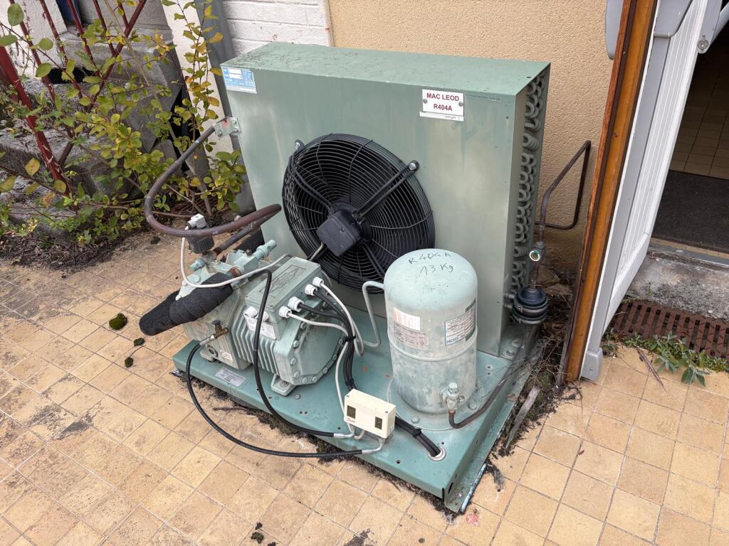 Lot 2 vitrines froid positif ouvertes, dimension 380cm x 2 avec groupes de froid externes Mac Leod se situant derrière le bâtiment environ 15/20 ans (vendu en live et sur désignation)