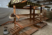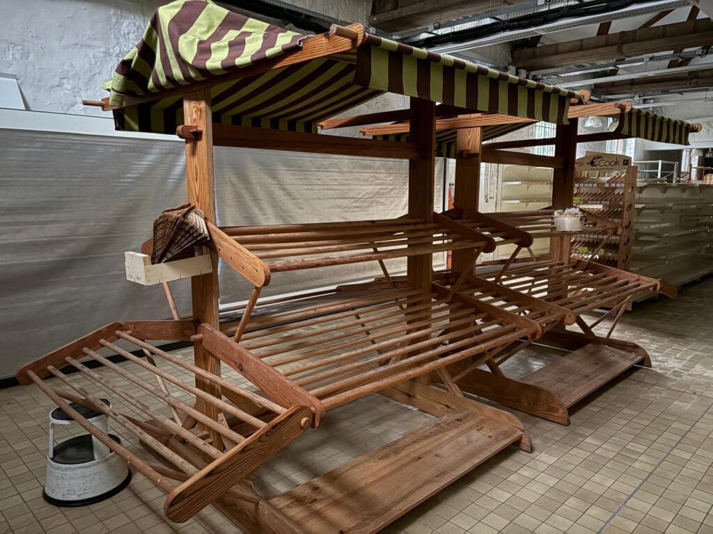 Lot de 2 présentoirs à légumes en bois environ 6m linéaires avec retour (vendu en live et sur désignation)