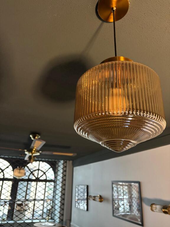 Lot de 6 luminaires de salle en verre, 6 appliques et 2 ventilateurs éclairants (vendu en live et sur désignation)