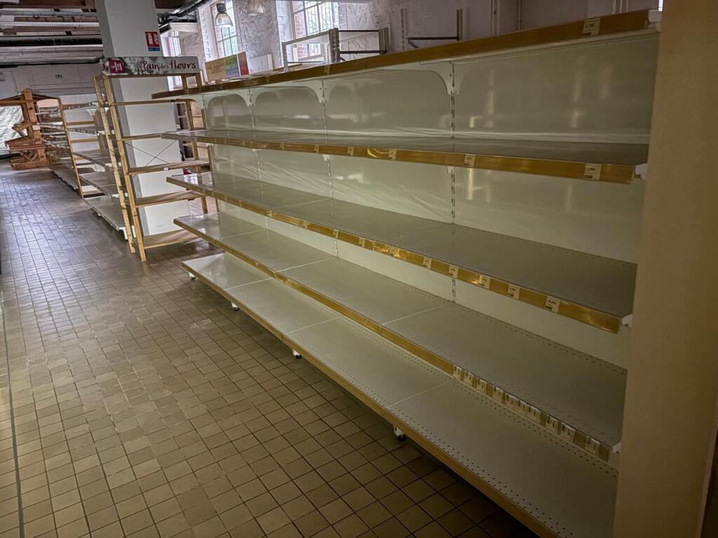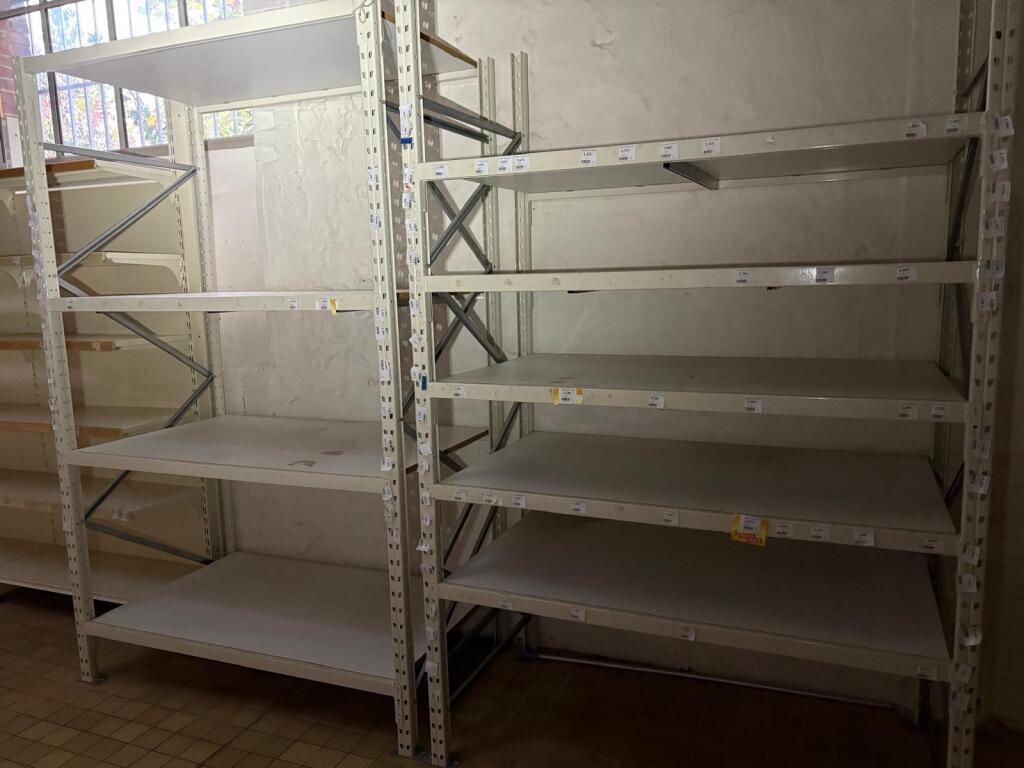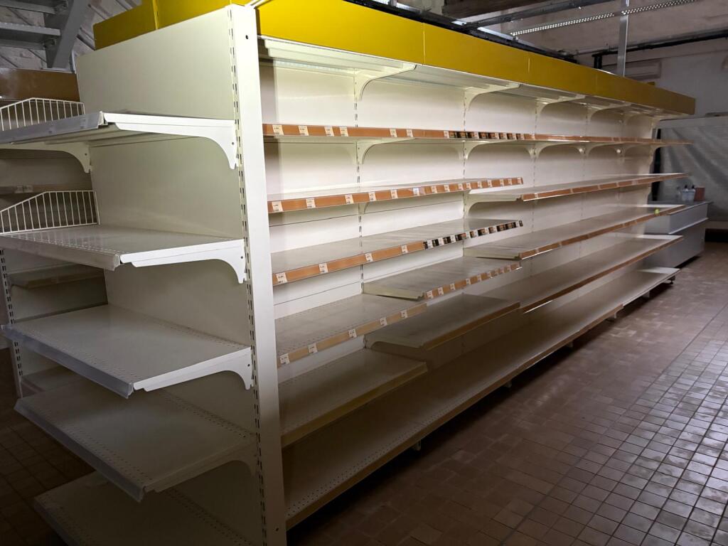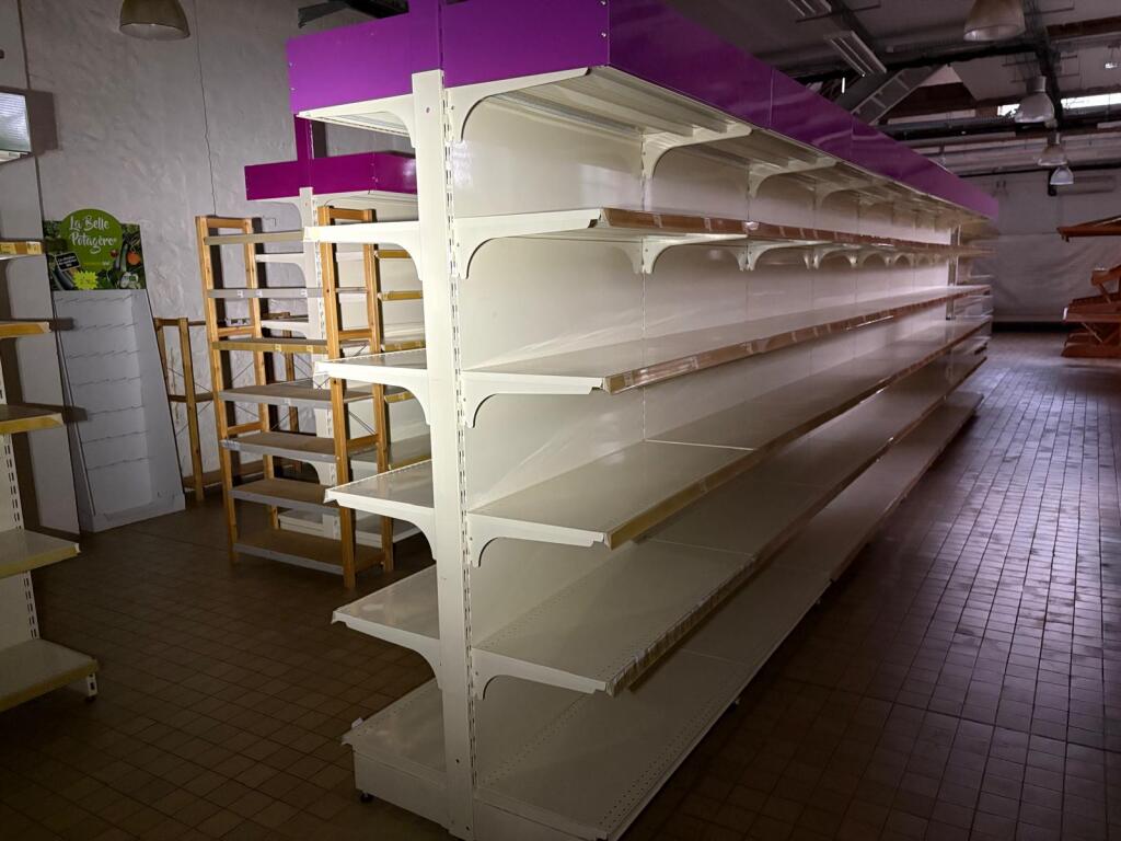 Lot d'environ 80 mètres linéaires de gondoles en métal et 2 petits racks légers en métal (vendu en live et sur désignation)