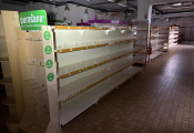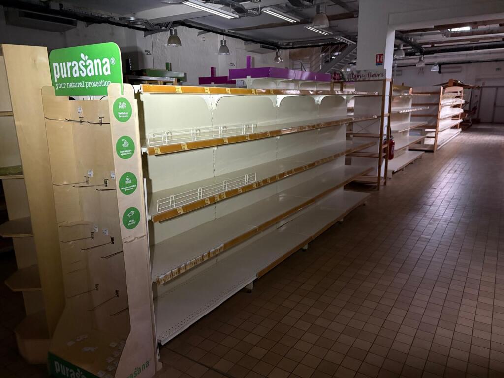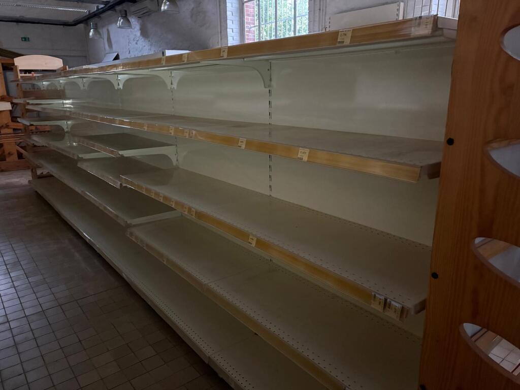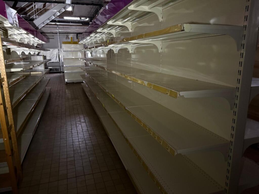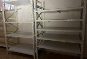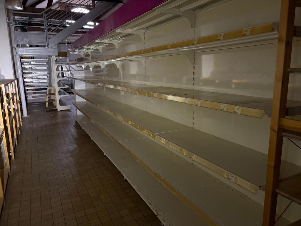 Lot d'environ 80 mètres linéaires de gondoles en métal et 2 petits racks légers en métal (vendu en live et sur désignation)