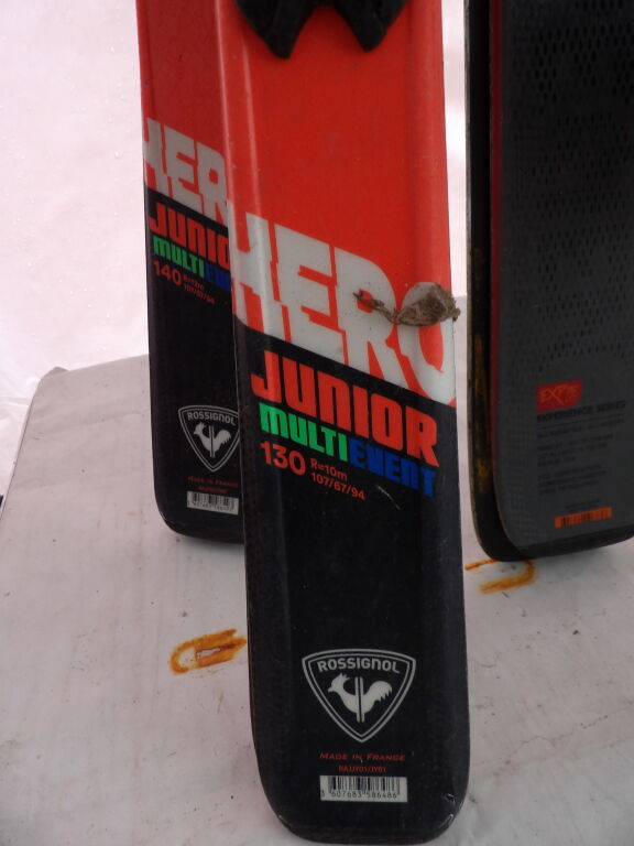 4 paires de skis 3 de marque Rossignol et une de marque Salomon dont skis enfants, occasion, état d'usage, pas d'envoi, à retirer à la salle (Cherré) ou prévoir transporteur.