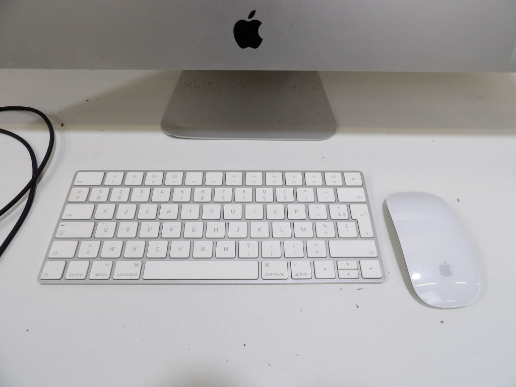 Apple ordinateur Mac (écran fissuré, non testé vendu en l'état) et un clavier et une souris.