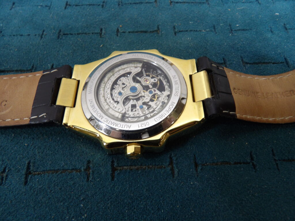 Montre Montignac MOPE 19B03, mouvement automatique, bracelet cuir effet croco, état d'usage, fonctionnement non garanti, vendue en l'état