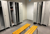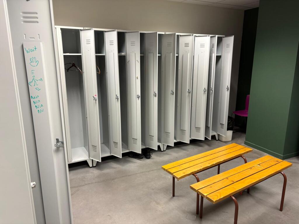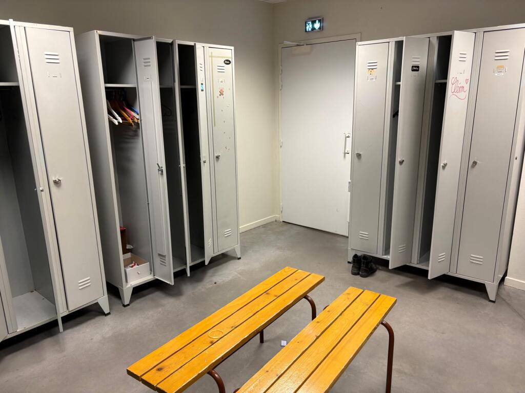 Lot de 11 casiers à 4 cases métal 2 bancs bois et 2 chaises plastique (Vendu sur désignation)