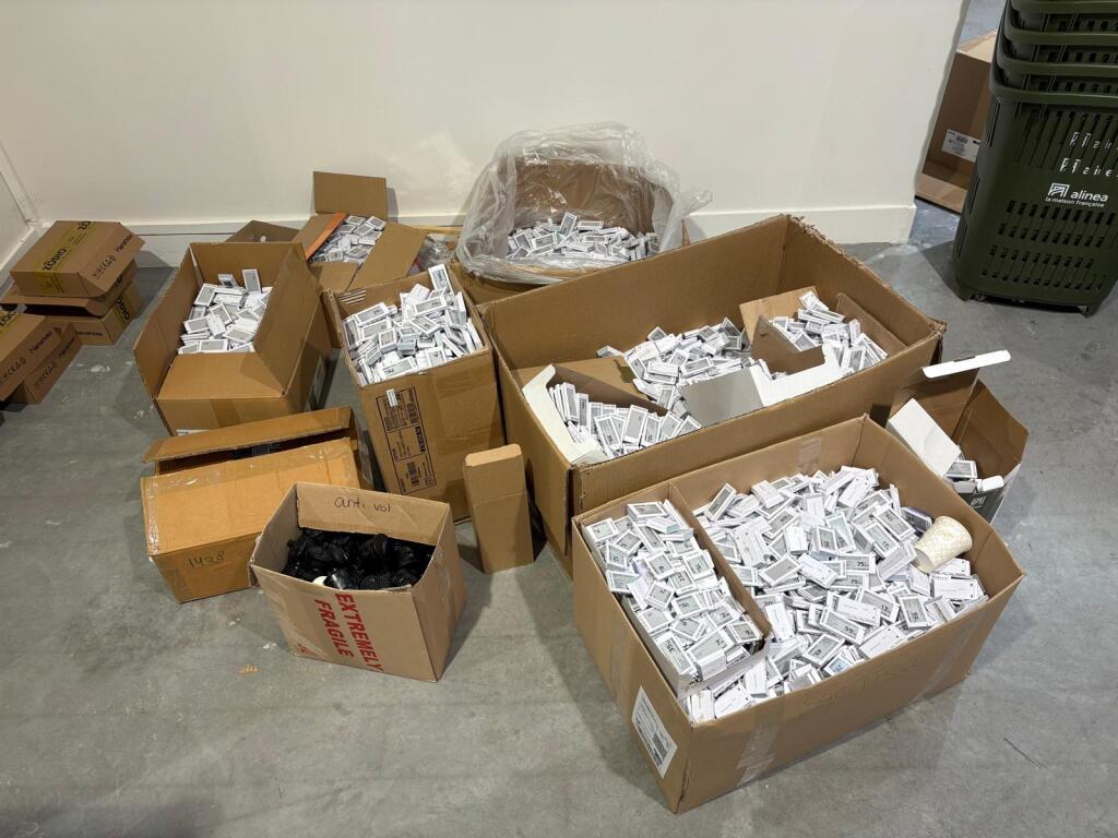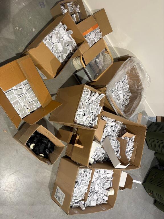 Lot de 4 bornes antivol THOONSEN, lot d'antivols divers et fort lot d'afficheurs de prix électroniques (Vendu sur désignation)