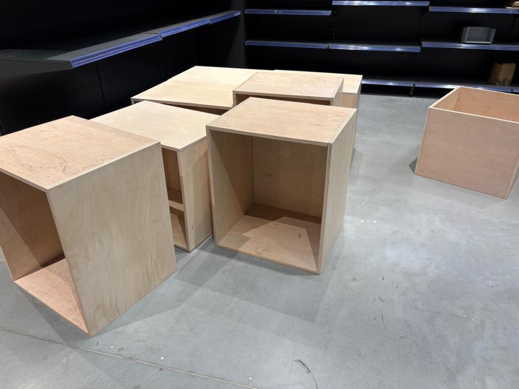 Lot palettes bois EPAL et caissons de présentation en contreplaqué (Vendu sur désignation)