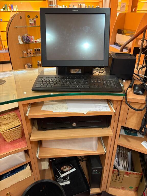 - Lot informatique TOSHIBA comprenant 2 caisses enregistreuses avec 2 écrans, 2 centrales, 2 imprimantes à tickets de 2015 et de 2020 et 2 douchettes scan