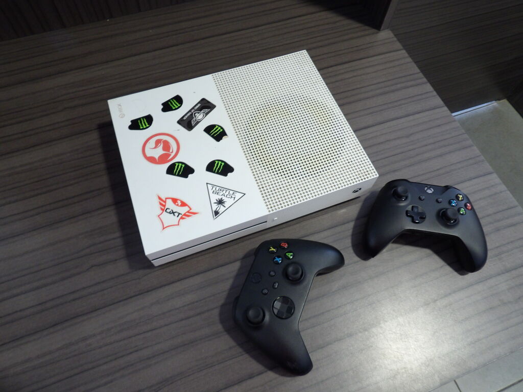 console Xbox one S avec 2 manettes, non testées et vendues sans cables et dans l'etat.