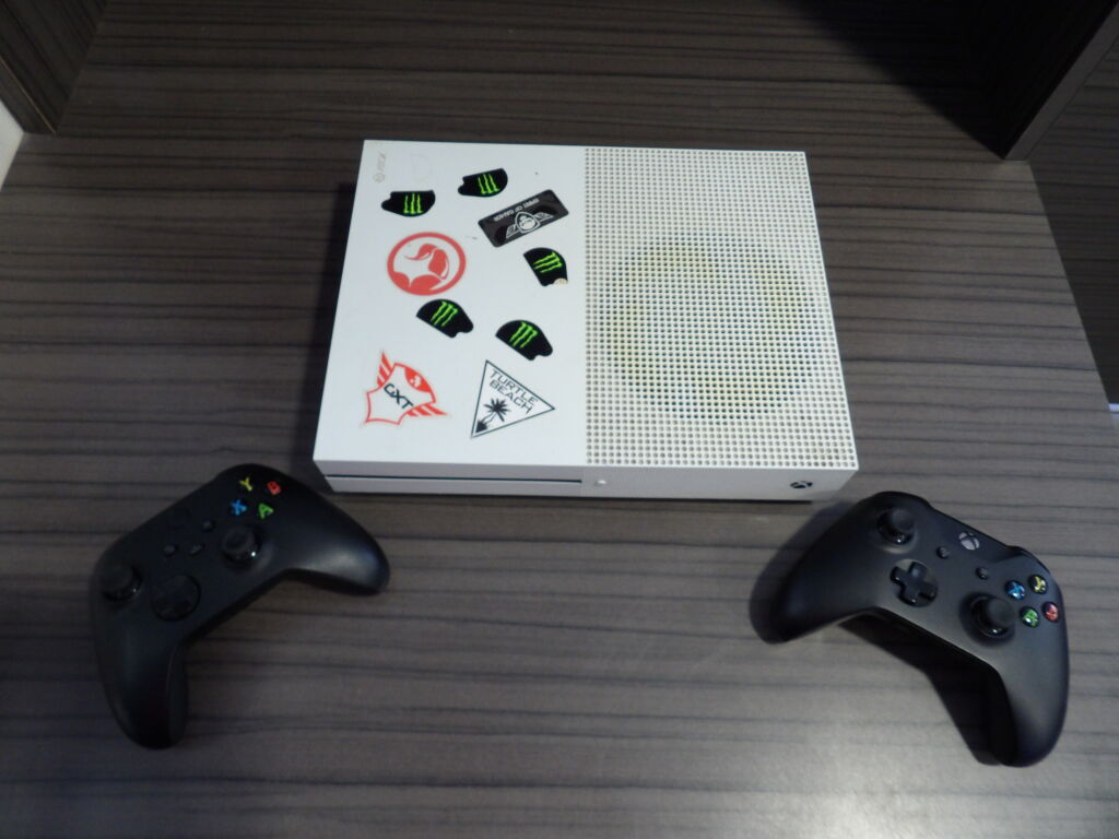 console Xbox one S avec 2 manettes, non testées et vendues sans cables et dans l'etat.