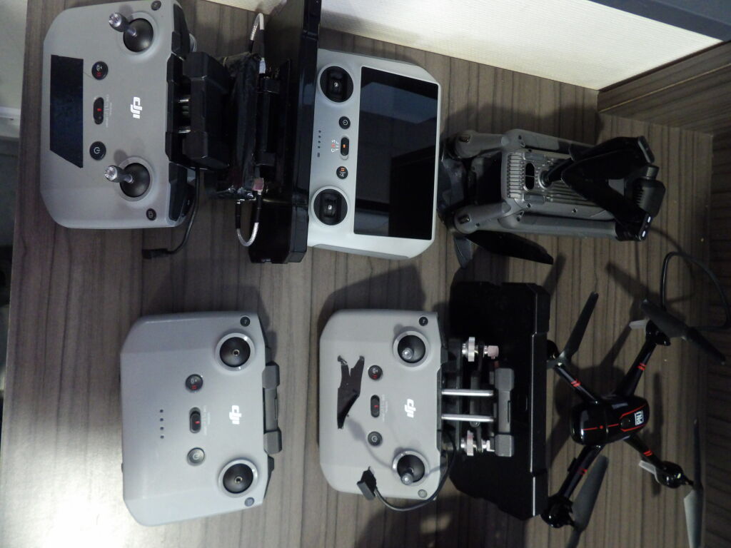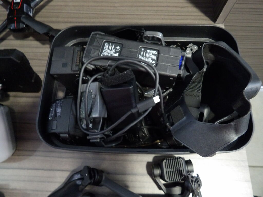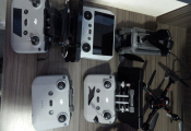 Lot 3 drones vendus dans l'etat pour pieces + 4 telecommandes DJI + accessoires dont batteries, malle de transport ...