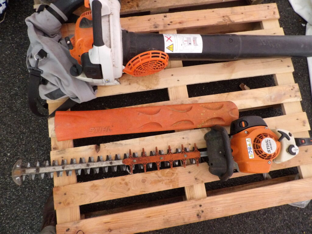 STIHL un souffleur thermique (modèle SH86C) et un taille haie thermique (modèle HS82R) occasion, non testés, vendus en l'état, pas d'envoi, à retirer à la salle (Cherré) ou prévoir transporteur.