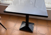 Lot de 29 tables mélaminé piètement en métal en 75x75cm et 70x70cm, 3 rondes en 120cm diamètre et 6 rectangles en 110x70cm (vendu sur désignation)