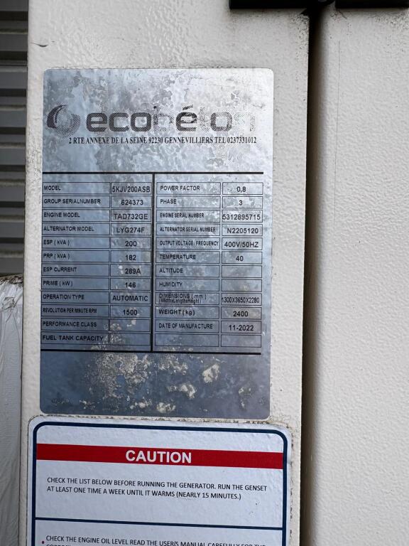 Groupe électrogène VOLVO 5KJ V 200ASB de 2022 pour 200 KVA