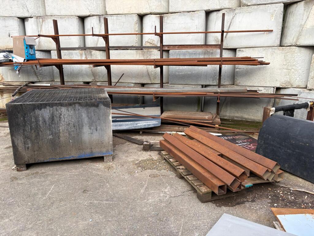 Lot racks métal et ferrailles diverses et grilles de concasseur/cribleuses