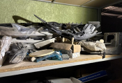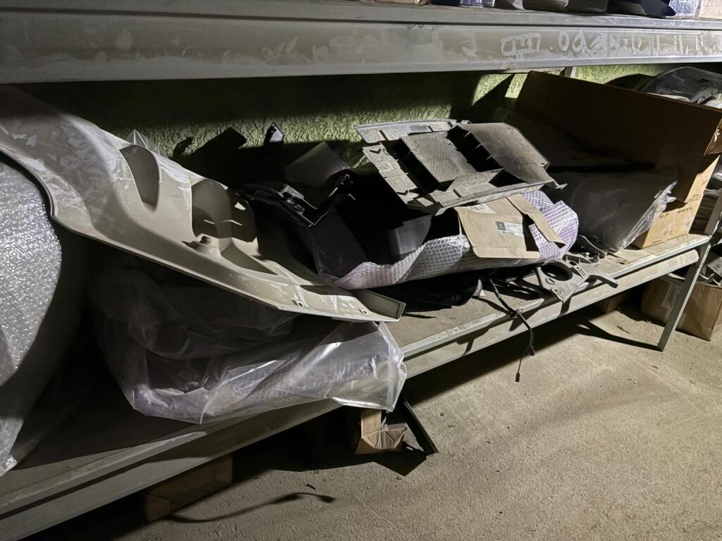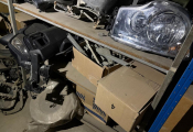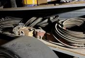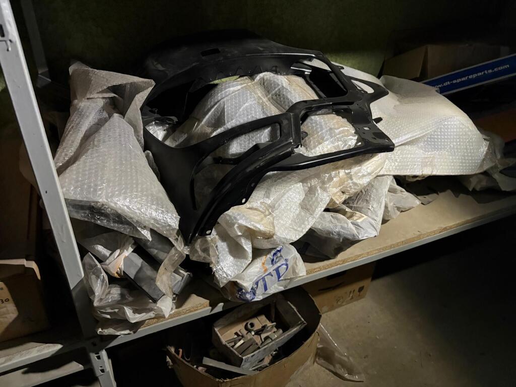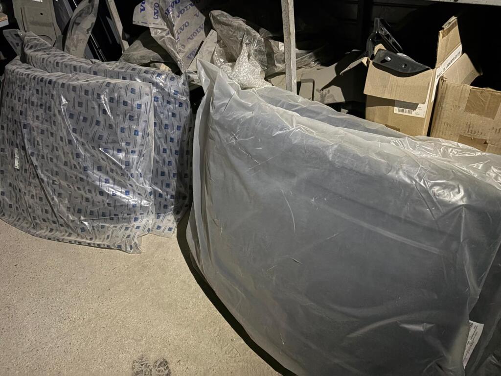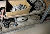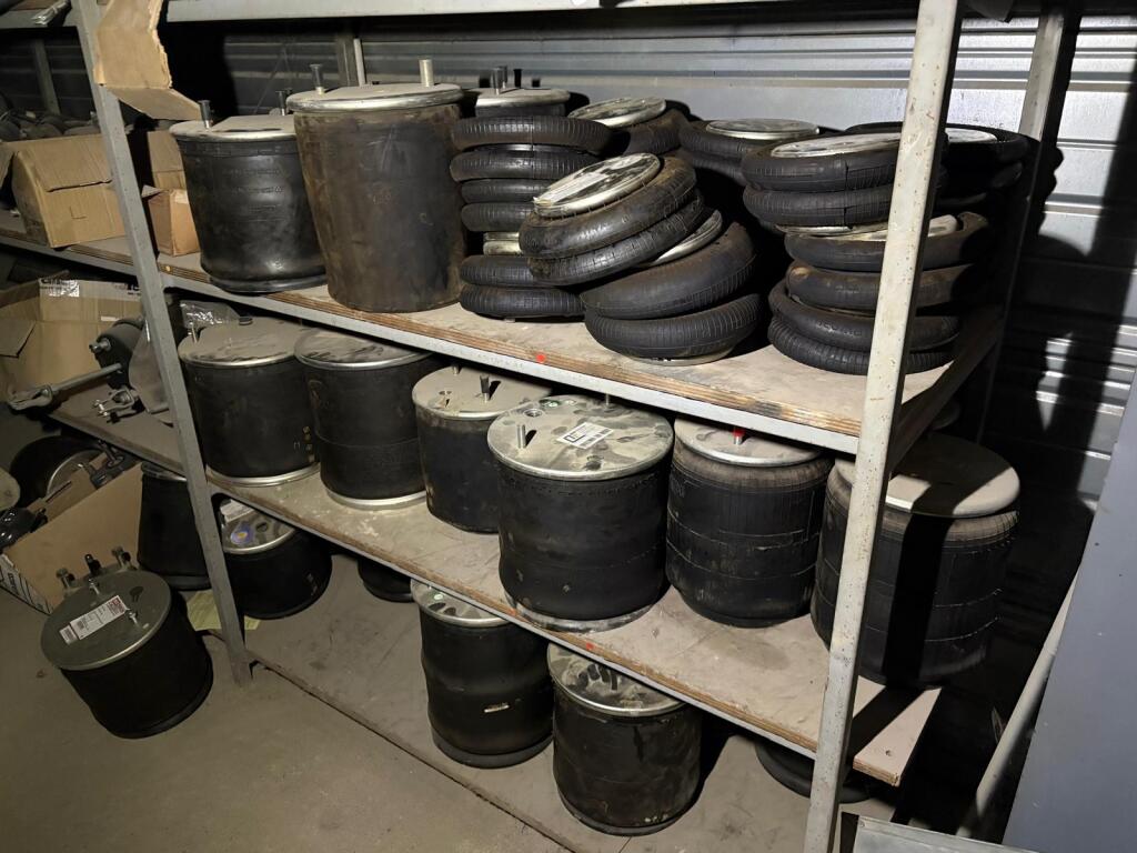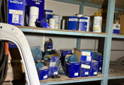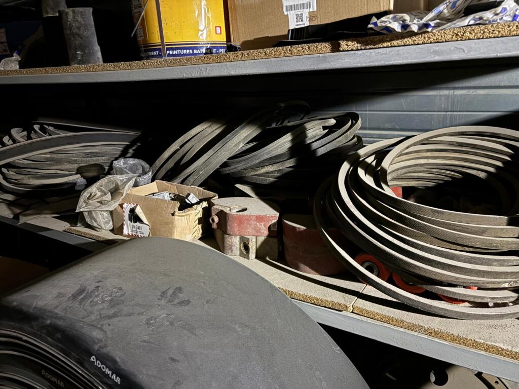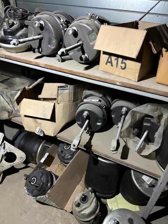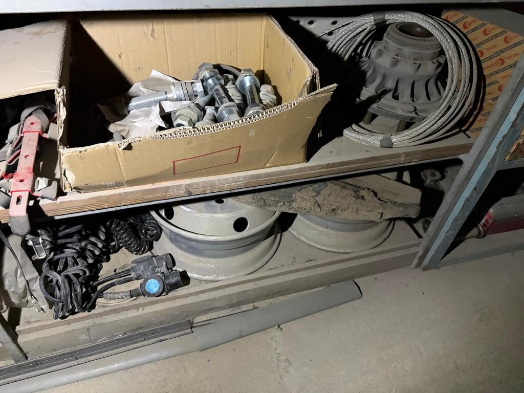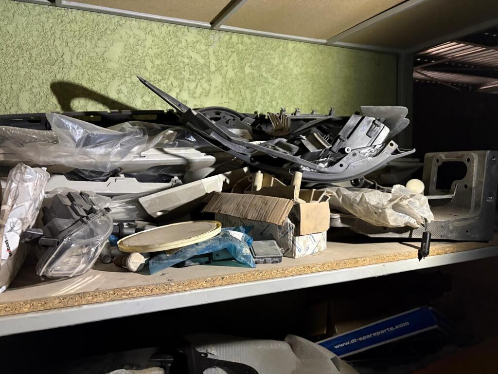 Fort lot de pièces détachées PL dont feux neufs, filtres diverses marques, disques de freins, filtres à air pour pelles, boulonnerie pour les godets, arceaux de bâches, nombreux garde boues et supports, 7 moteurs électriques neufs et autres joints de porte, courroies, glaces de rétroviseur VOLVO optiques, rétroviseurs, galets de malaxeur à béton, lot de caissons d'air, tricstop, fort lot de filtres divers à air, gasoil et hydraulique, plaquettes de freins VOLVO Mercedes, disques, pièces de carrosserie diverses, jantes, silent bloc et petit lot de filtres, plaquette et divers consommations d'entretien de VL, bobines pour soudure et divers