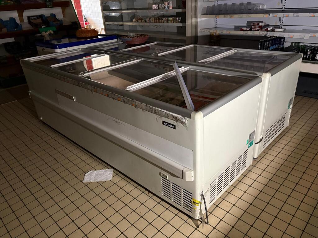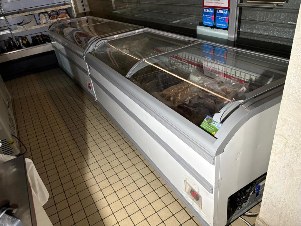 Vendu en un lot l'aménagement d'une supérette située 19 Mail Jean de Dunois à Chartres comprenant 7 congélateurs dont 3 marque AHT en 210cm, 2 marque XOXKA en 250cm, un Liebehr en 100cm, une vitrine froid positif 2 portes publicitaire, une caisse enregistreuse CASIO et un desk caisse inox, un lecteur de code barre Honeywell et une prise de commande ZEBRA, un présentoir à légumes en 300cm, 2 vitrines en froid positif ouvertes KOXKA de 2003 en 240cm et l'autre COSTAN en 360cm, un monte charge ancien PONCHE et FOURNAUX. Tous les congélateurs sont vendus vides. (Vendu sur désignation)