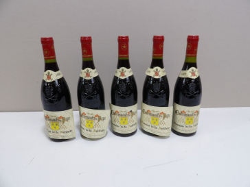 Châteauneuf-du-Pape, 5 bouteilles du Domaine de la Solitude 1989 ( décollements d'étiquettes, tâches).
