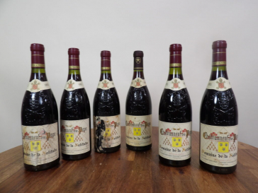 Châteauneuf-du-Pape, 6 bouteilles du Domaine de la Solitude 1993, niveaux voir photo, attention étiquettes tâchées.