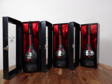 3 bouteilles de scotch whisky 70 cl (niveaux indéfinis) 2 The Black Prince 17 ans d'âge, bouchons sous blister traces d'humidité de la cave) et une bouteille Royal Salute 21 ans d'âge (Chivas Brothers LTD.) bouchon sous blister