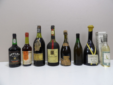 Spiritueux : fond de cave 8 flacons dont Porto, Calvados, alcool de poire, Grande Fine de Calvados ... diferses contenances, divers niveaux ... Bouchons cire manques sur certaines bouiteilles, étiquettes manquantes et dégradées.