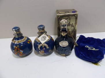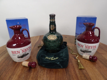 3 bouteilles de Scotch Whisky (70 cl) dont une de Chivas Royal Salute 21 ans d'âge et 2 x Ben Devis Special réserve, contenants en faïence