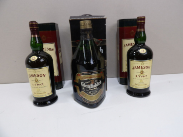 Whisky : 3 bouteilles dont Jameson 12 ans d'âge (1L.) et Glenfiddich (1,75 L.)