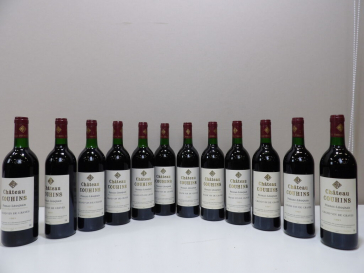 Pessac-Léognan : Château Couhins 1991, 12 bouteilles (niveaux voir photos), très bel état de présentation.