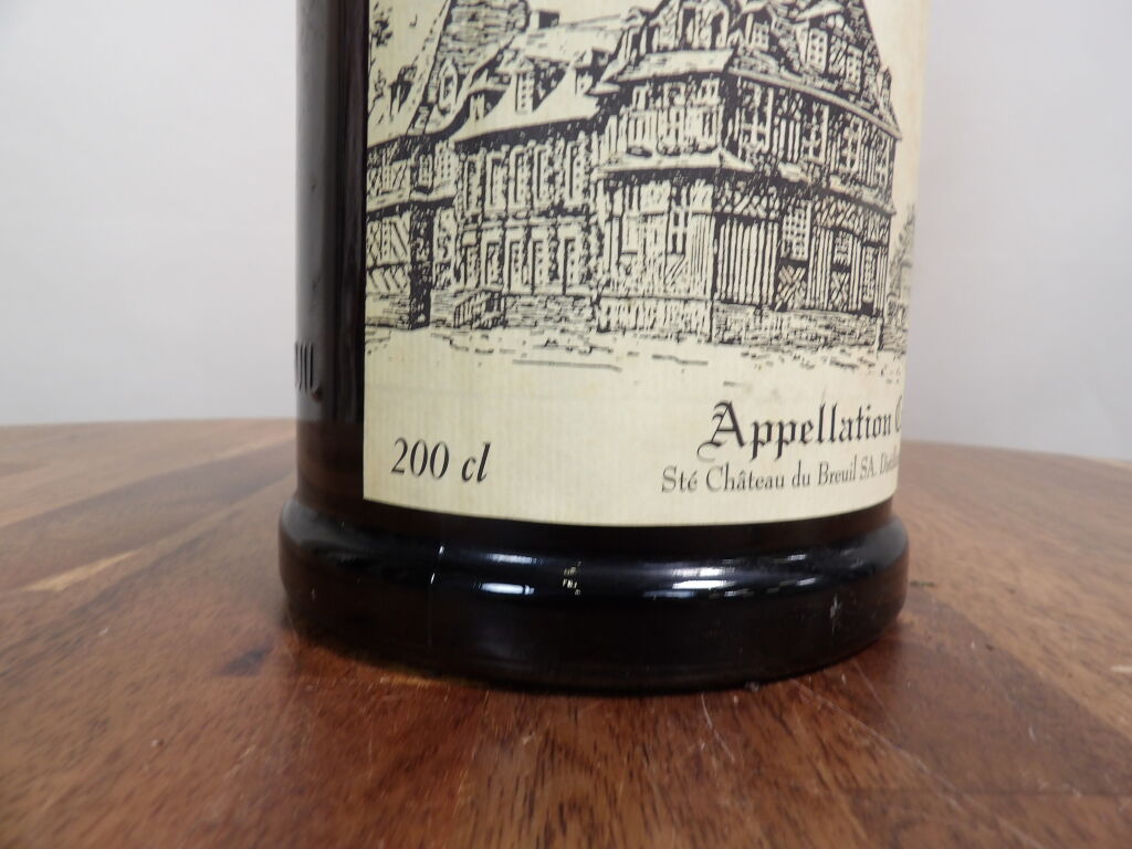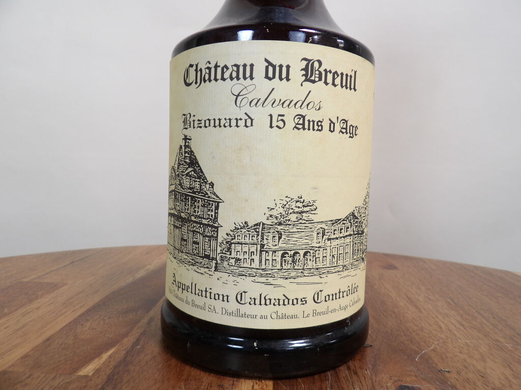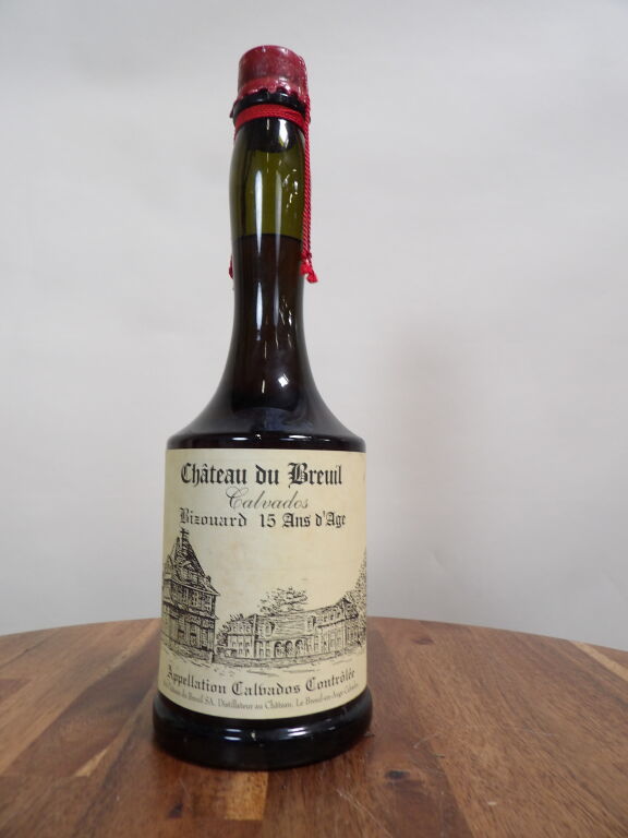 Calvados : Château du Breuil Bizouard 15 ans d'âge bouteille de 2 litres !!! Bouchon ciré, étiquette tâchée.