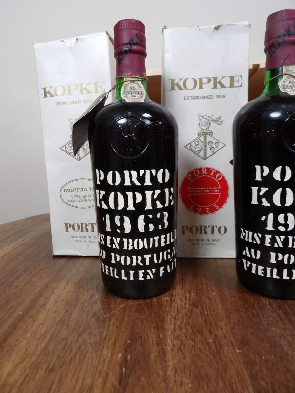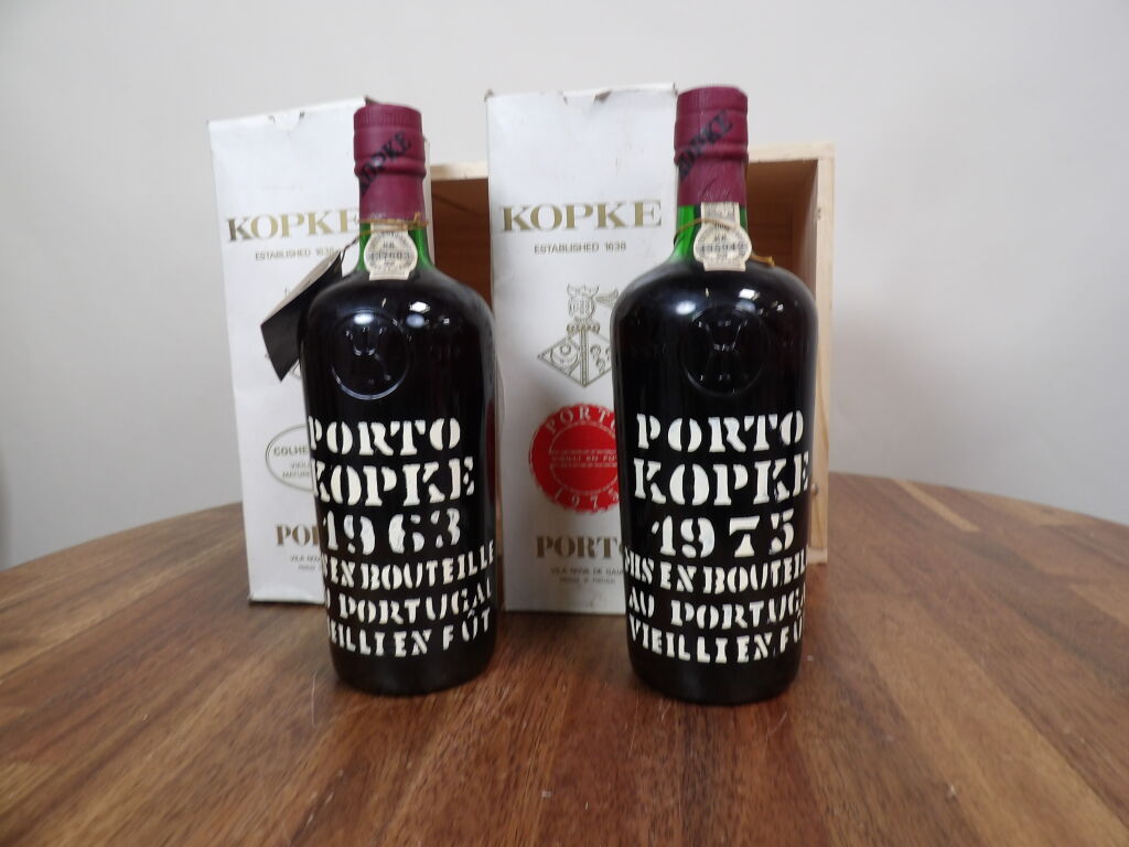 Porto Kopke 2 bouteilles 1963 et 1975 (boîtes carton abîmées)