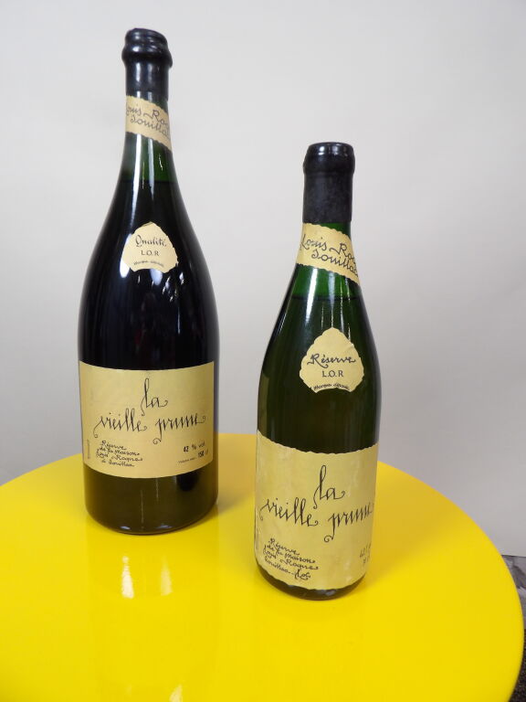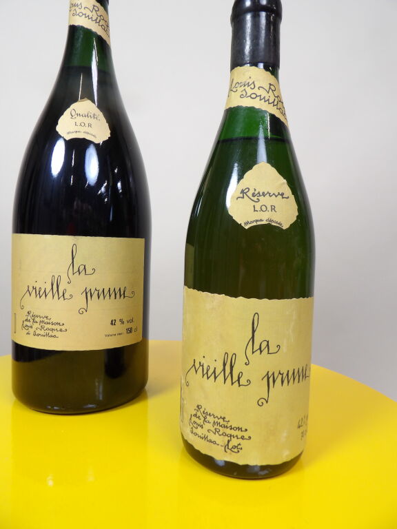 Vieille prune de Souillac maison Louis Roque un magnum (manques de cire) et une bouteille de 70 cl