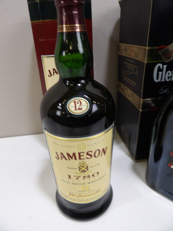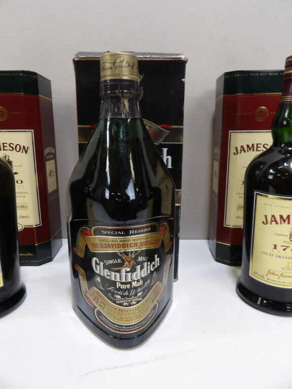 Whisky : 3 bouteilles dont Jameson 12 ans d'âge (1L.) et Glenfiddich (1,75 L.)